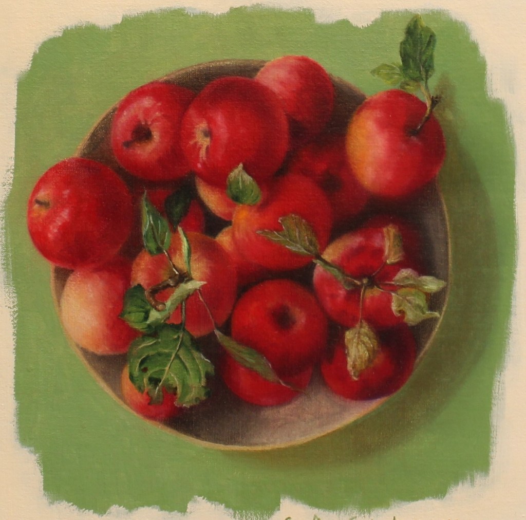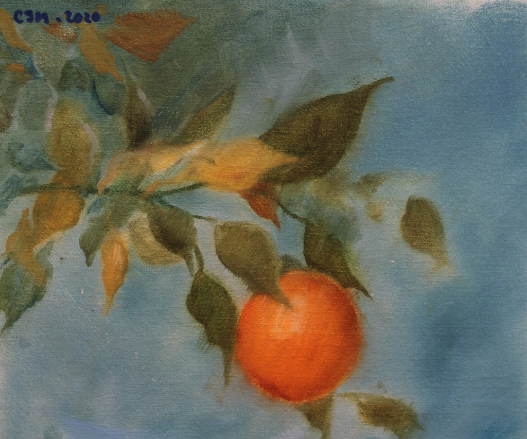 RED APPLE ON RED BACKGROUND Oil on linen – 16 cm x 19 cm – 2020 (not available for sale)GRAPES AND BOWL Oil on canvas – 27 cm x 27 cm – 2020 (not available for sale)RED APPLES IN A BOWL Oil on linen – 27 cm x 27 cm – 2020 (not available for sale)ORANGE TREE BRANCH Oil on linen – 17 cm x 21 cm – 2020 (not available for sale)